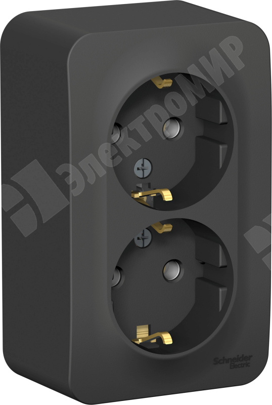Розетка Systeme Electric (ранее Schneider Electric) BLANCA (антрацит, открытой установки) двухместная, без шторок, с заземлением и изолирующей пластиной предназначена для сетей до 250В, на ток до 16А. Двухместная розетка позволяет подключить два устройства в одном месте. Заземление обеспечивает безопасность при косвенном прикосновении. Она изготовлена из ABS-пластика, проста в установке и удобна в применении.