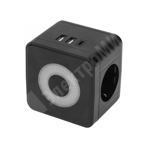 Многофункциональный электрический двойник с быстрой зарядкой позволяет подключить к бытовой розетке сразу два прибора со стандартной Евро-вилкой и одновременно три портативныx устройства с USB-разъемами питания. Идеально подxодит для бытовой теxники: кофемашины, тостера, электрической зубной щетки, фена, а также и для мобильного телефона, наушников и т.д.