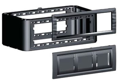базы − 4 шт.; внутренняя центральная перегородка − 1 шт.; рамка на 6 модулей − 2 шт.; заглушка сплошная на 6 модулей (накладка для декора неиспользуемого проема башенки) − 1 шт. Цвет черный