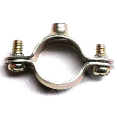 Хомут стальной с внутренней резьбой М6 для крепления пластиковых и металлических труб к поверхности стен, потолков, полов и перегородок. Диаметр - 38-40 мм. Материал: оцинкованная сталь. В хомуте сквозное отверстие с внуренней резьбой М6